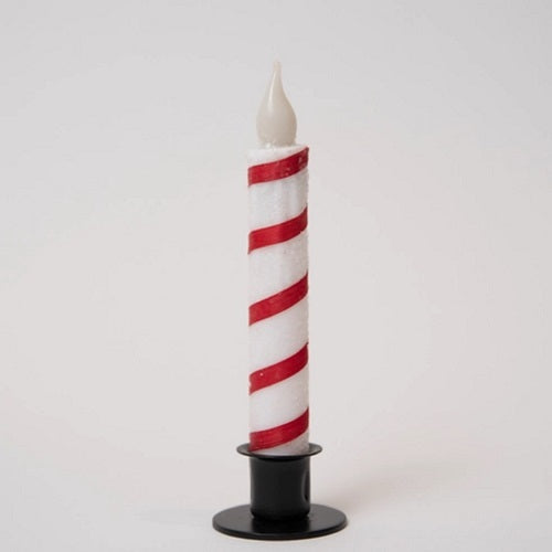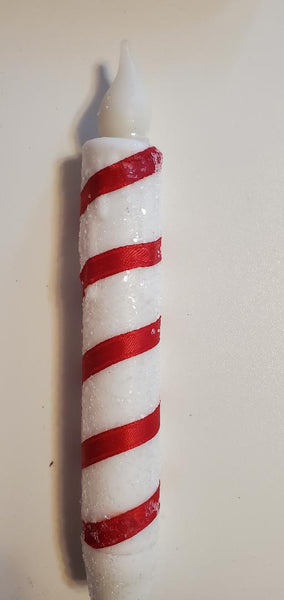Diamond Dusted Candy Cane Striped Timer Taper Candle 7" White