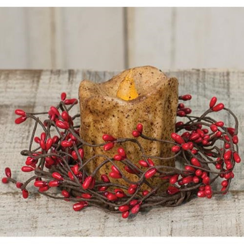 Pip Berry Ring in Red features red pip berries on a wispy, brown-wrapped floral ring.