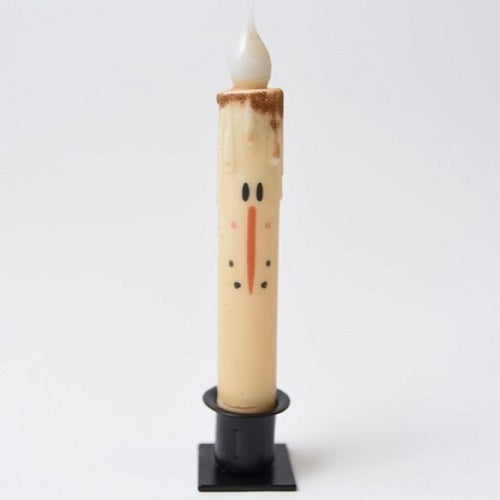 Country Primitive Cream Snowman Face Led Timer Taper Candle