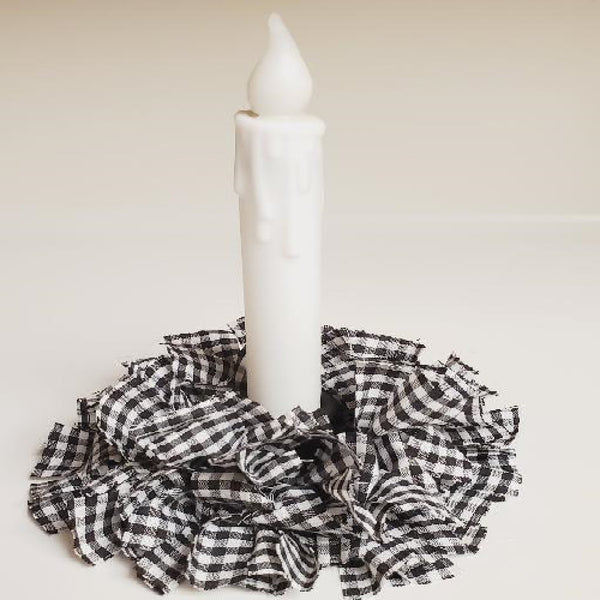 Country Farmhouse Black & White Gingham Taper Candle Ring