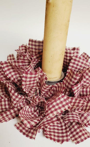 Country Primitive Mini Rag Wreath Taper Candle Ring