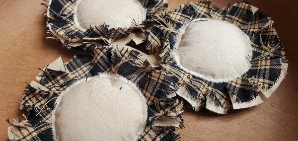 Country Primitive Fabric Flowers Bowl Fillers Black Plaid