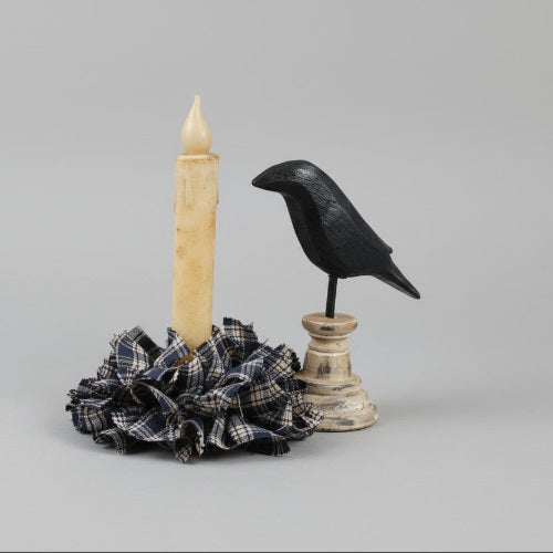 Country Primitive Navy Blue Plaid Homespun Rag Wreath Taper Candle Ring