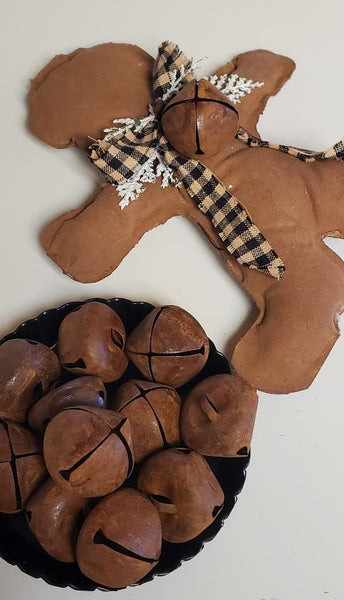 Weathered jingle bells in a rusty finish for seasonal crafting