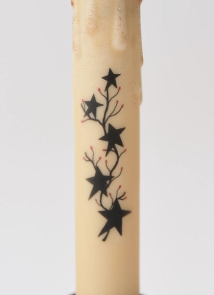 Our Primitive Star Garland Taper Candle Runs on 2 AA batteries (not included)