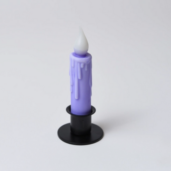Our Lavender Purple taper candle runs on 1 AA batteries (not included)