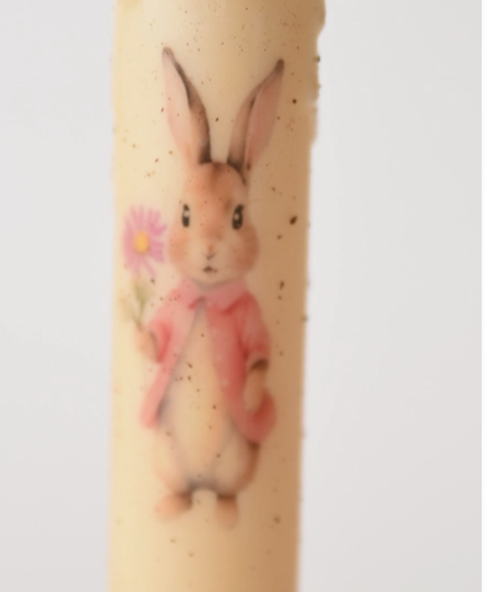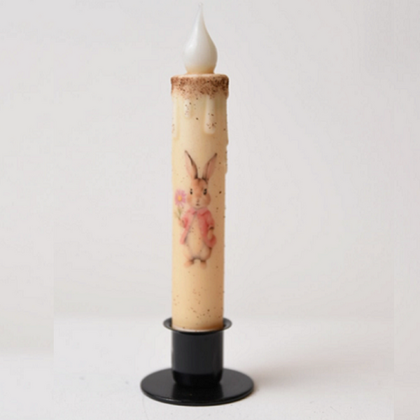 Country Primitive Flopsy Bunny with Pink Flowers Led Timer Taper Candle 7"