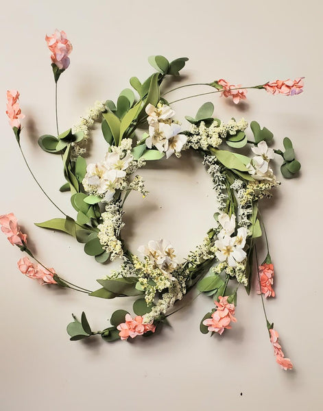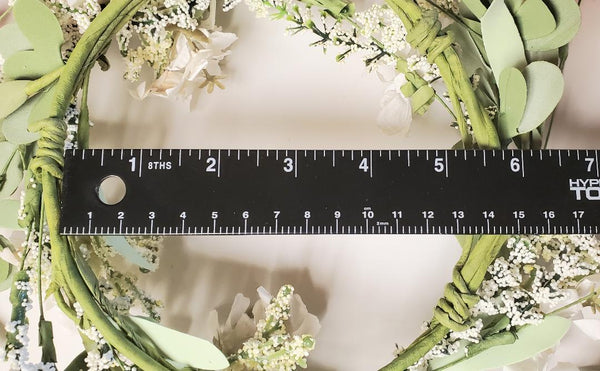 This adjustable floral wreath features an inner diameter of 5.5" and expands to 10-12" on the outer edge, allowing you to customize the look to suit your décor.