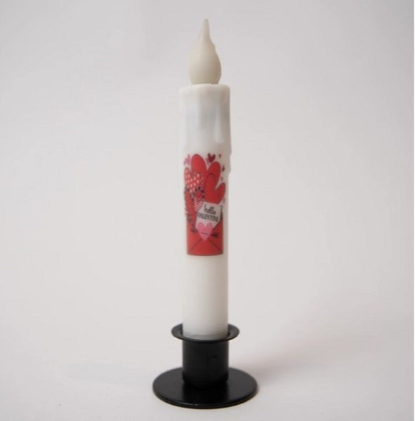 Primitive Hello Valentine Timer Taper Candle 7"