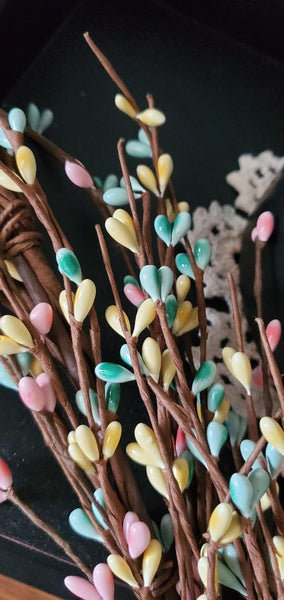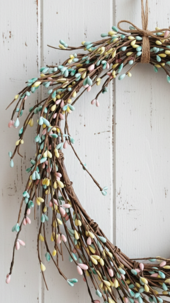 Add a touch of charm to your home décor with this 55-inch Pip Berry Garland in soft Light Teal, Light Yellow, and Light Pink hues.